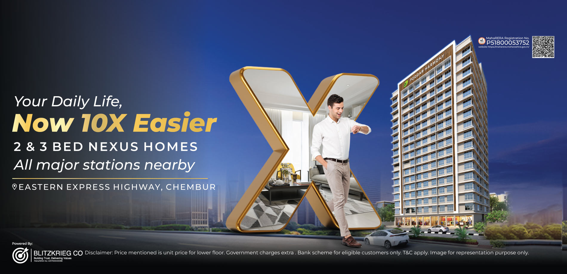 Poddar Harmony in Chembur offers Nexus Homes that combine comfort, convenience, and modern design. Located on the Eastern Express Highway, it provides prime connectivity to South Mumbai, BKC, and Navi Mumbai. With smart amenities like wellness zones, rooftop jogging tracks, and play areas, the project promotes family-focused living and gives you more time for what truly matters.